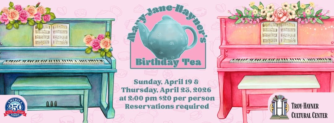 Each spring, the Troy-Hayner Cultural Center honors the birthday of our founder, Mary Jane Hayner, with an elegant afternoon tea. Guests enjoy a beautifully prepared tea service, complete with sweets, savories, and fine tea in the Hayner Mansion. After your tea service we will head up to the Hayner Ballroom for a beautiful program of music and poetry.